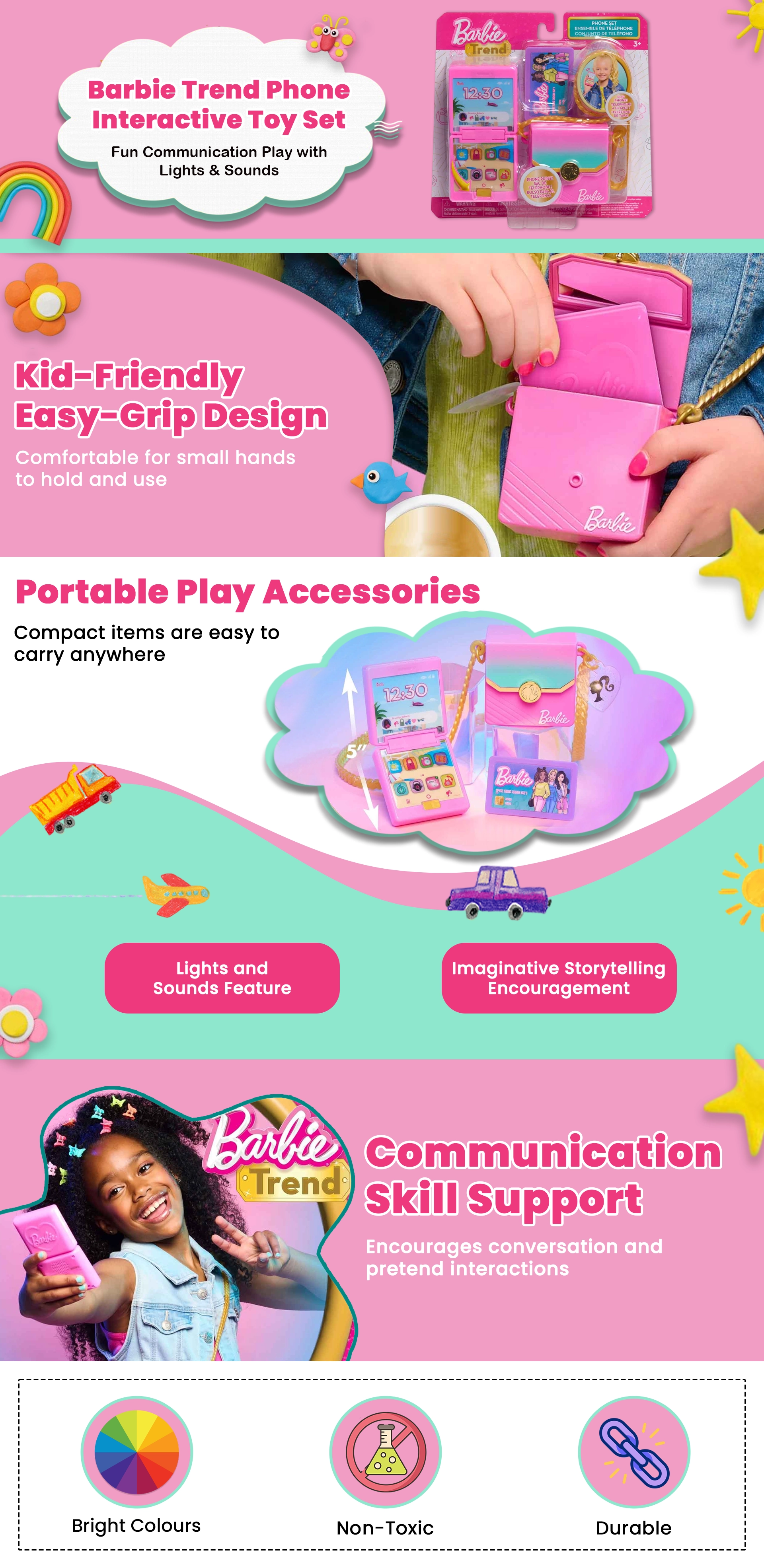 باربي مجموعة هاتف عصري تفاعلي 4 قطع للبنات، 3-4 سنوات | متجر كانا