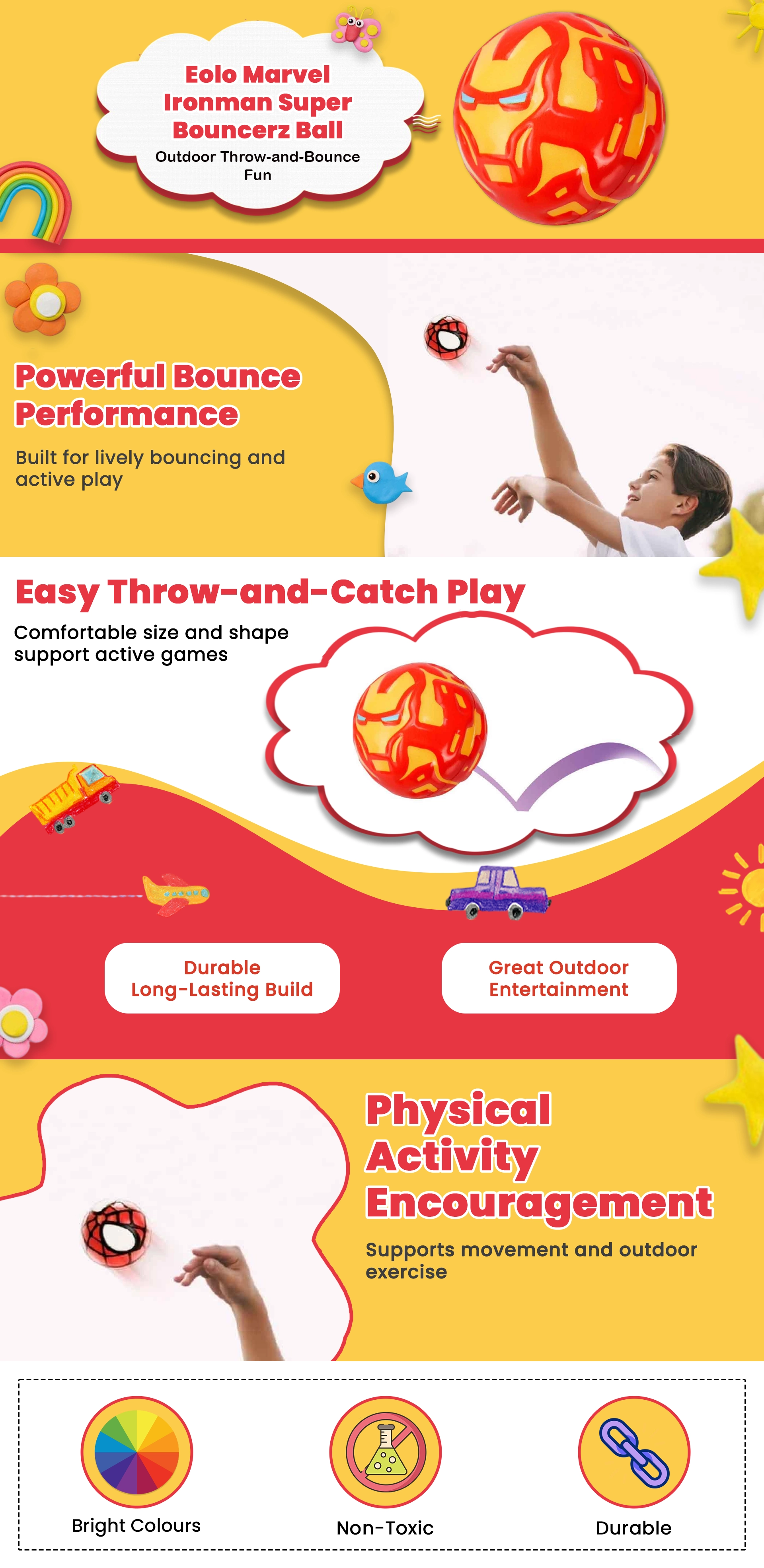 إيولو كرة سوبر باونسرز آيرون مان من مارفل للأولاد، 3-4 سنوات | متجر كانا