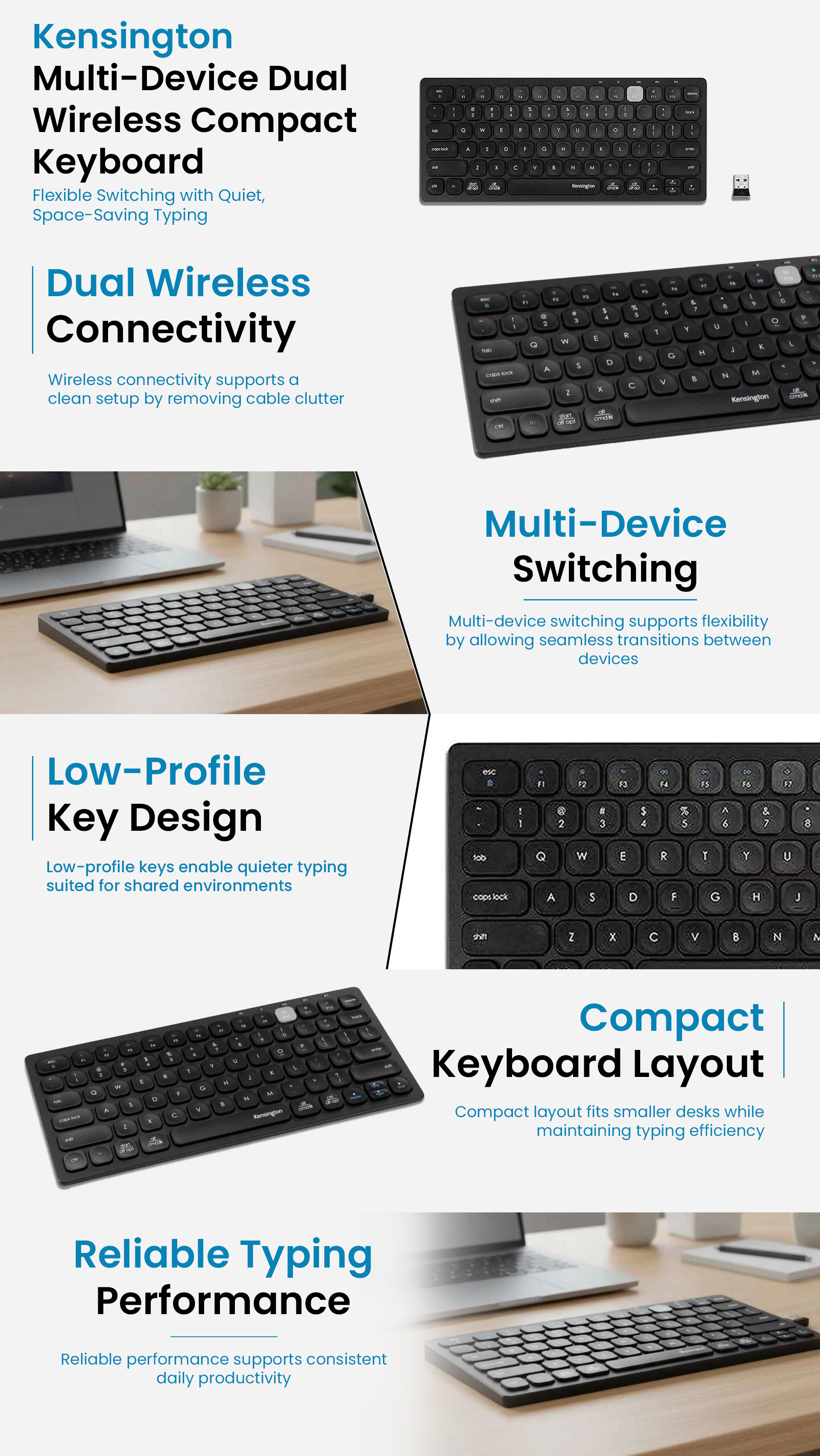 كينسينغتون لوحة مفاتيح لاسلكية مدمجة متعددة الأجهزة مزدوجة الاتصال أسود | متجر كانا