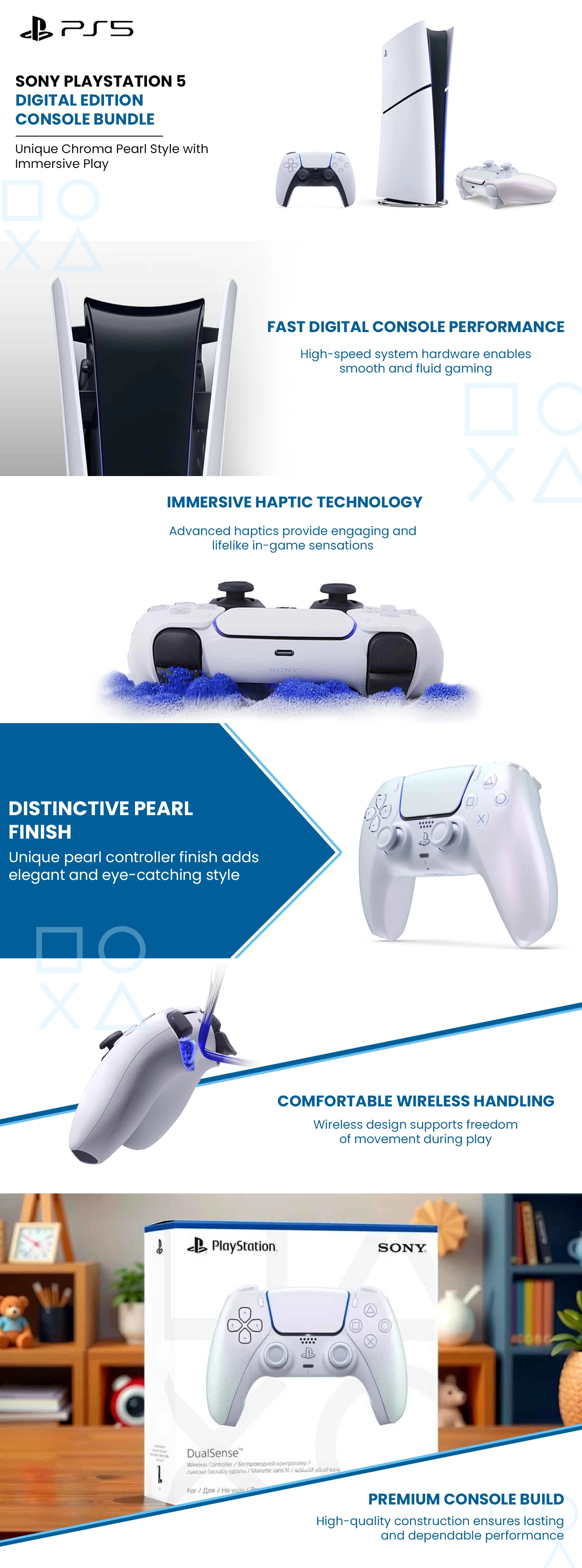 سوني بلايستيشن 5 نسخة السعودية الإصدار الرقمي 1 تيرابايت مع وحدة تحكم لاسلكية دوال سينس نسخة السعودية بلون الكروم اللؤلؤي – حزمة | متجر كانا
