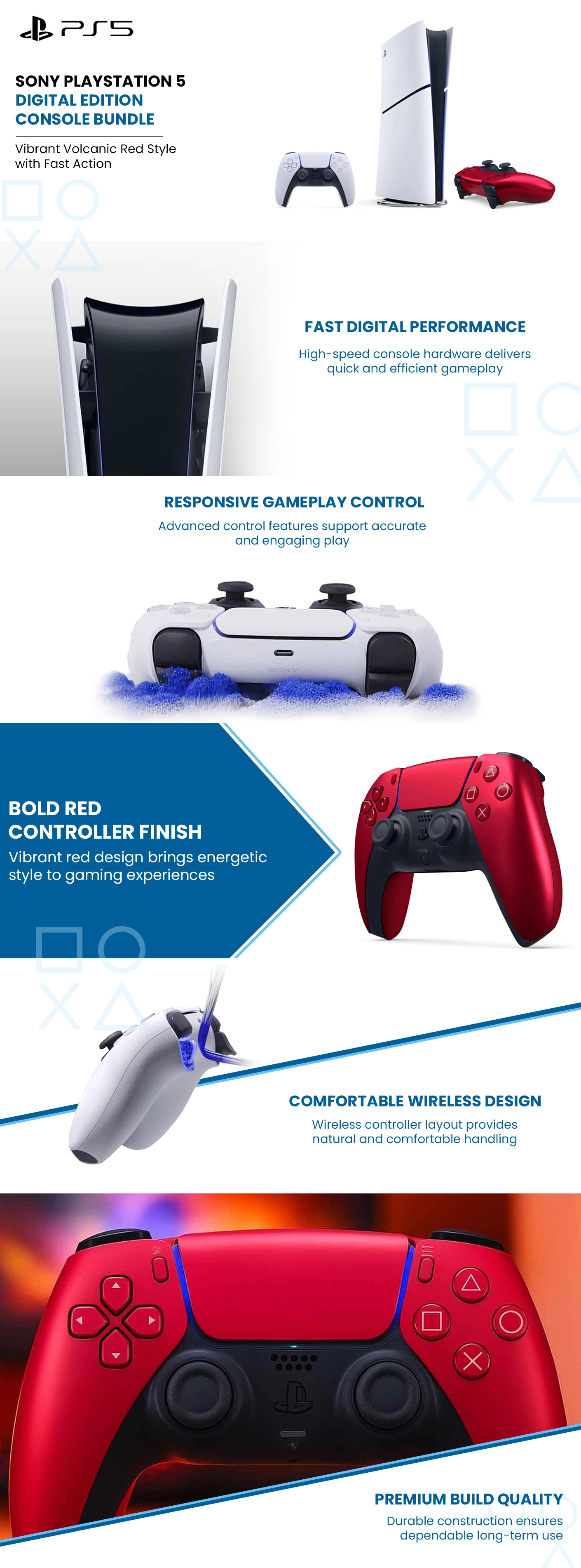 سوني بلايستيشن 5 نسخة السعودية الإصدار الرقمي 1 تيرابايت مع وحدة تحكم لاسلكية دوال سينس نسخة السعودية باللون الأحمر البركاني – حزمة | متجر كانا